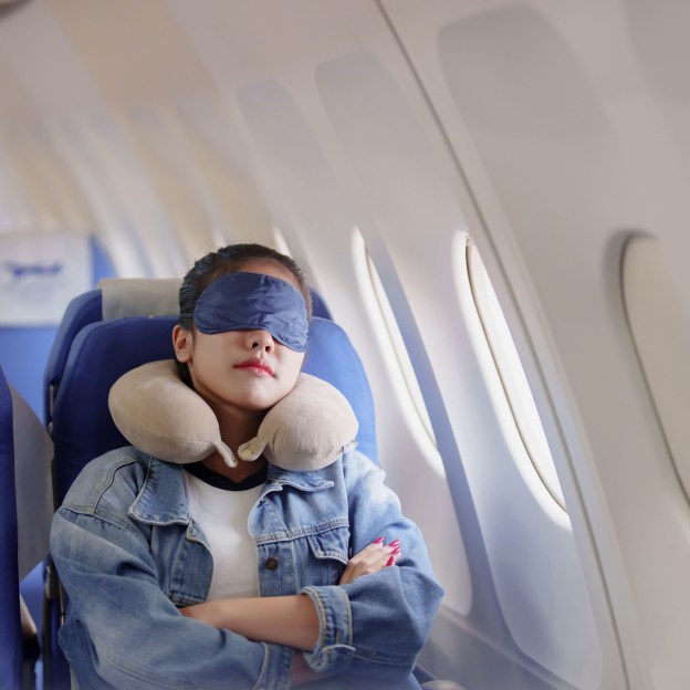 A woman wearing a transcranial magnetic stimulation (TMS) device