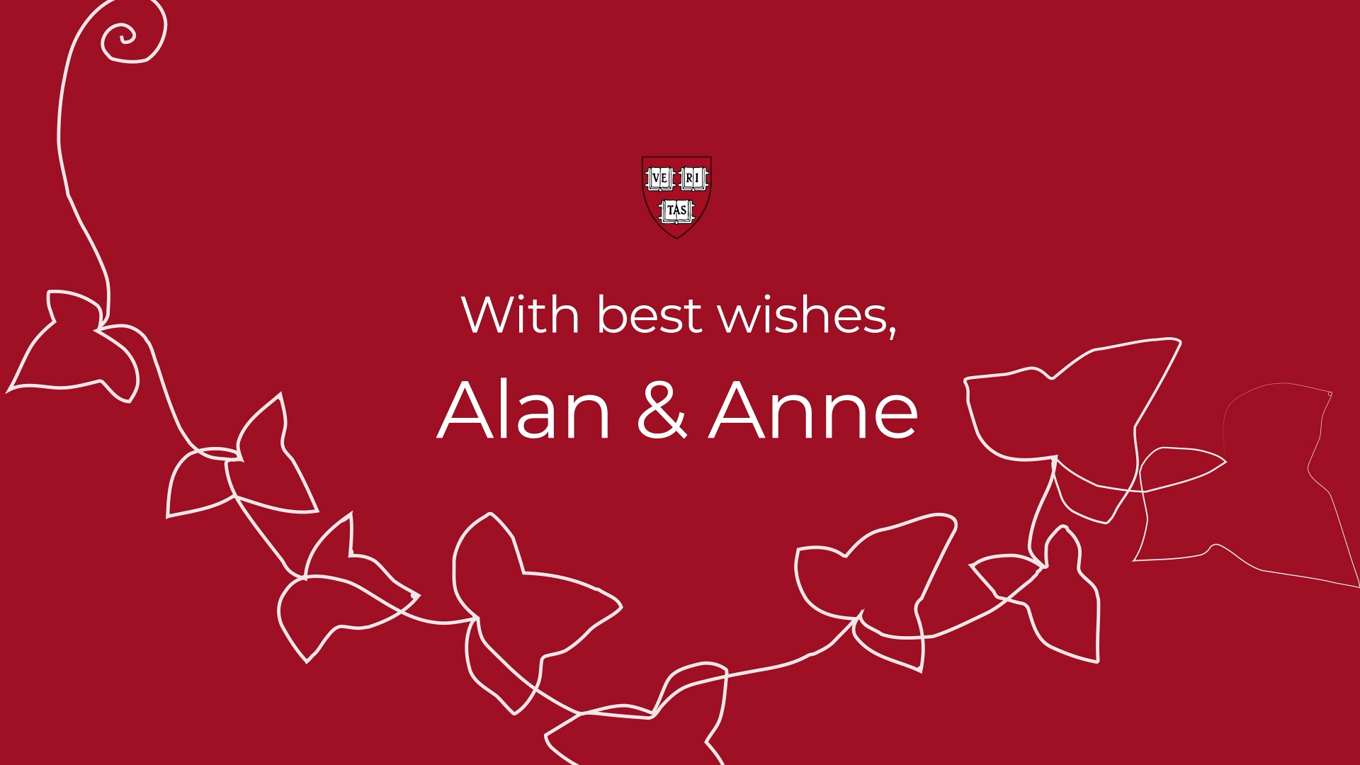 A seasonal message from Anne Yahanda and Alan Garber Holiday Greetings Click to Play Video View video with audio descriptions