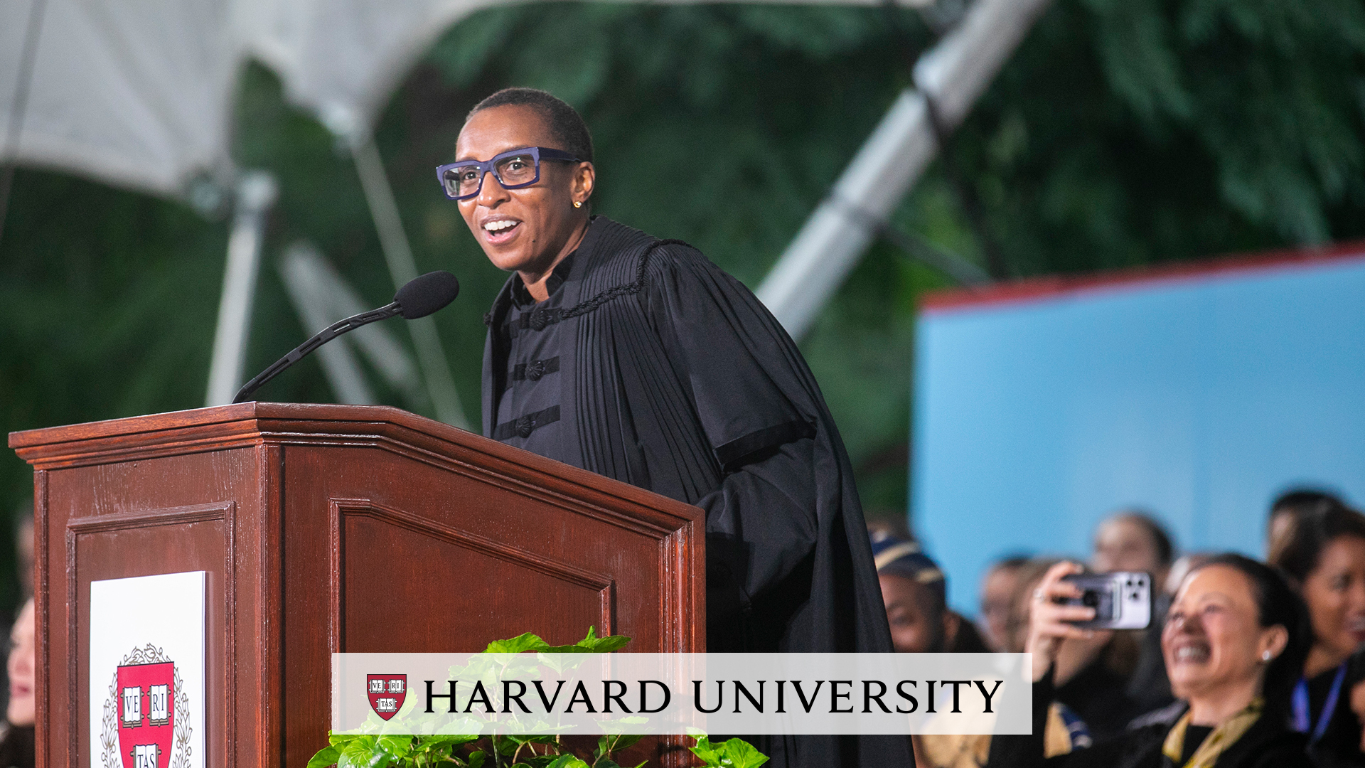 And because of the collective courage of all those who walked that impossible distance, across centuries, and dared to create a different future, I stand before you on this stage—in this distinguished company and magnificent theatre, at this moment of challenge in our nation and in the world, with the weight and honor of being a “first”—able to say, “I am Claudine Gay, the president of Harvard University.”